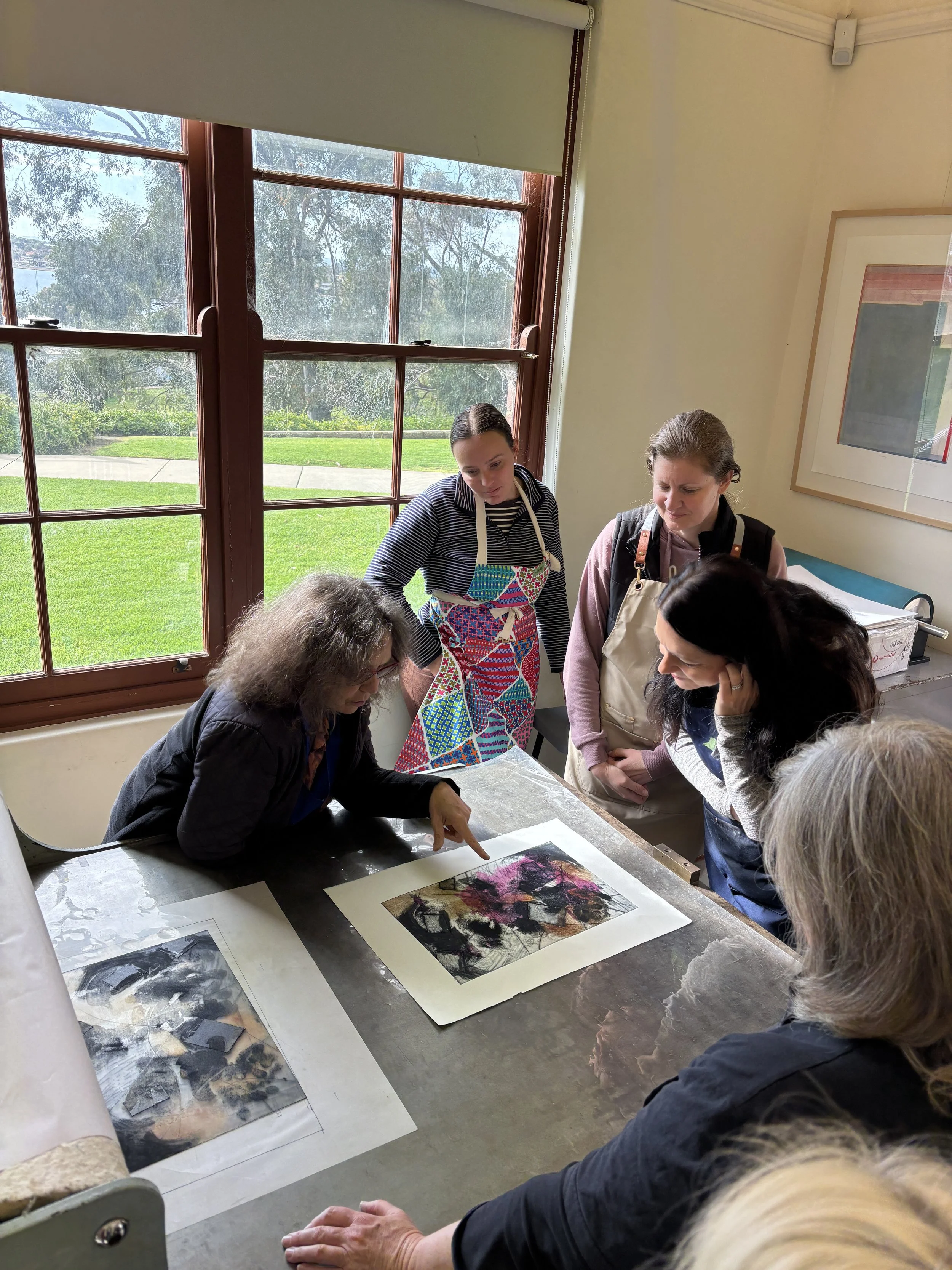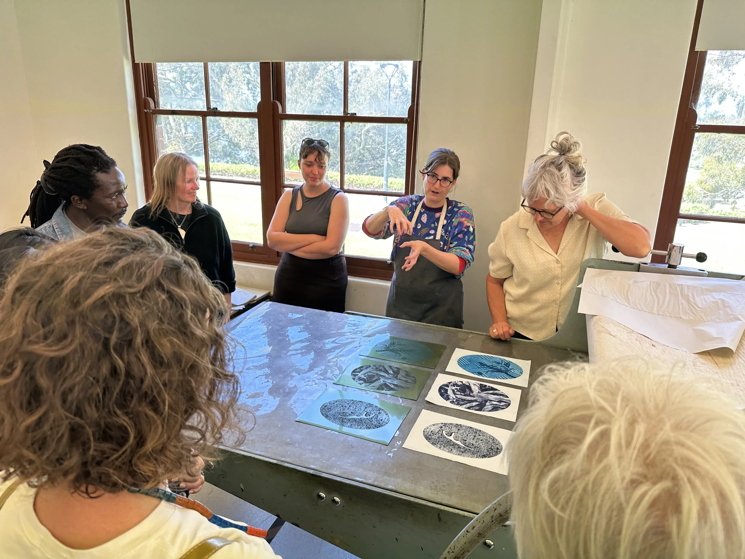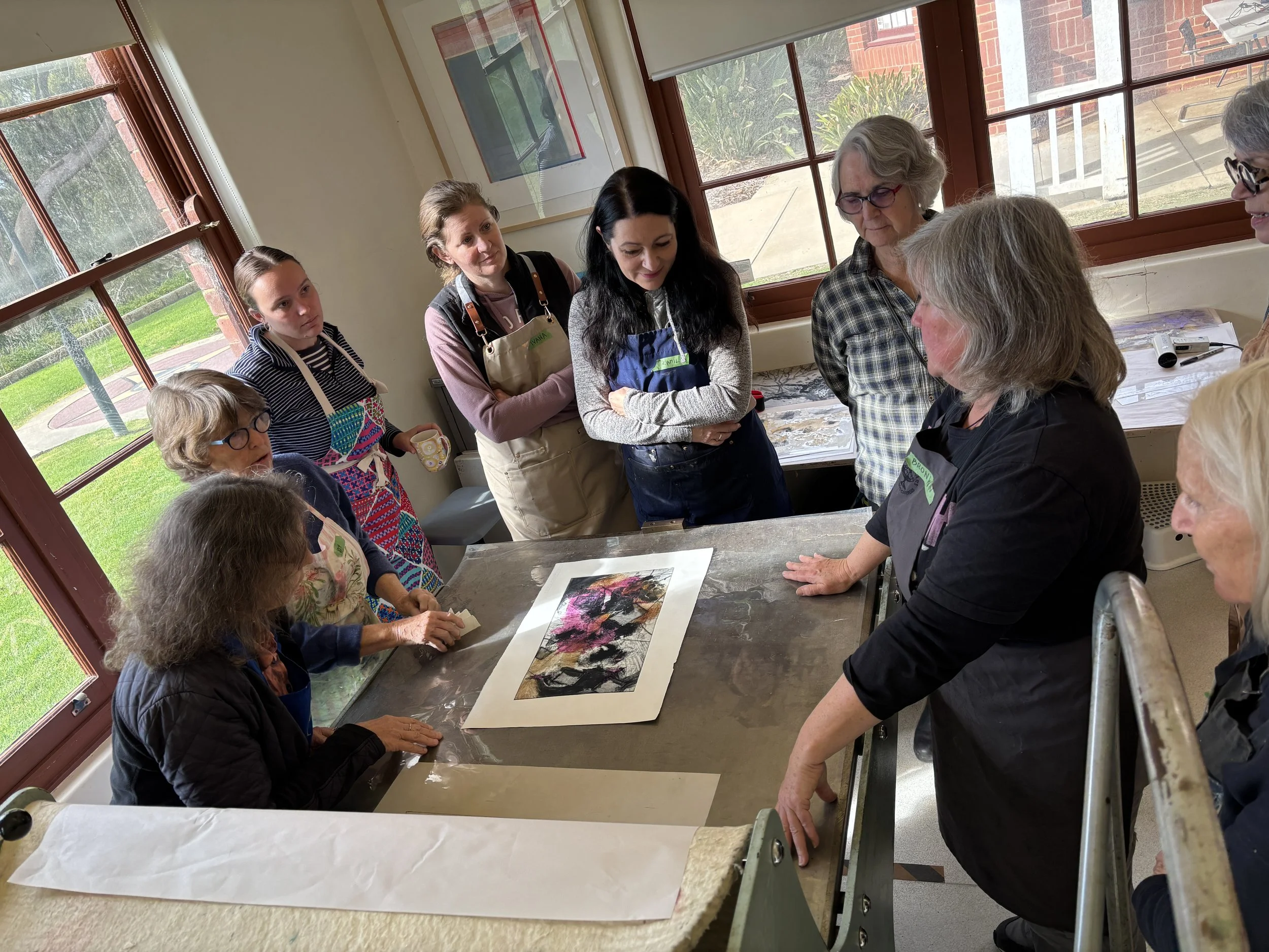 Founded in 2018 by Jo Darvall, Annemie McAuliffe, and Claire Lawson as a professional working space where WA artists can develop and refine their printmaking practice, the Swan River Print Studio is a not-for-profit organisation developed and managed by artists.