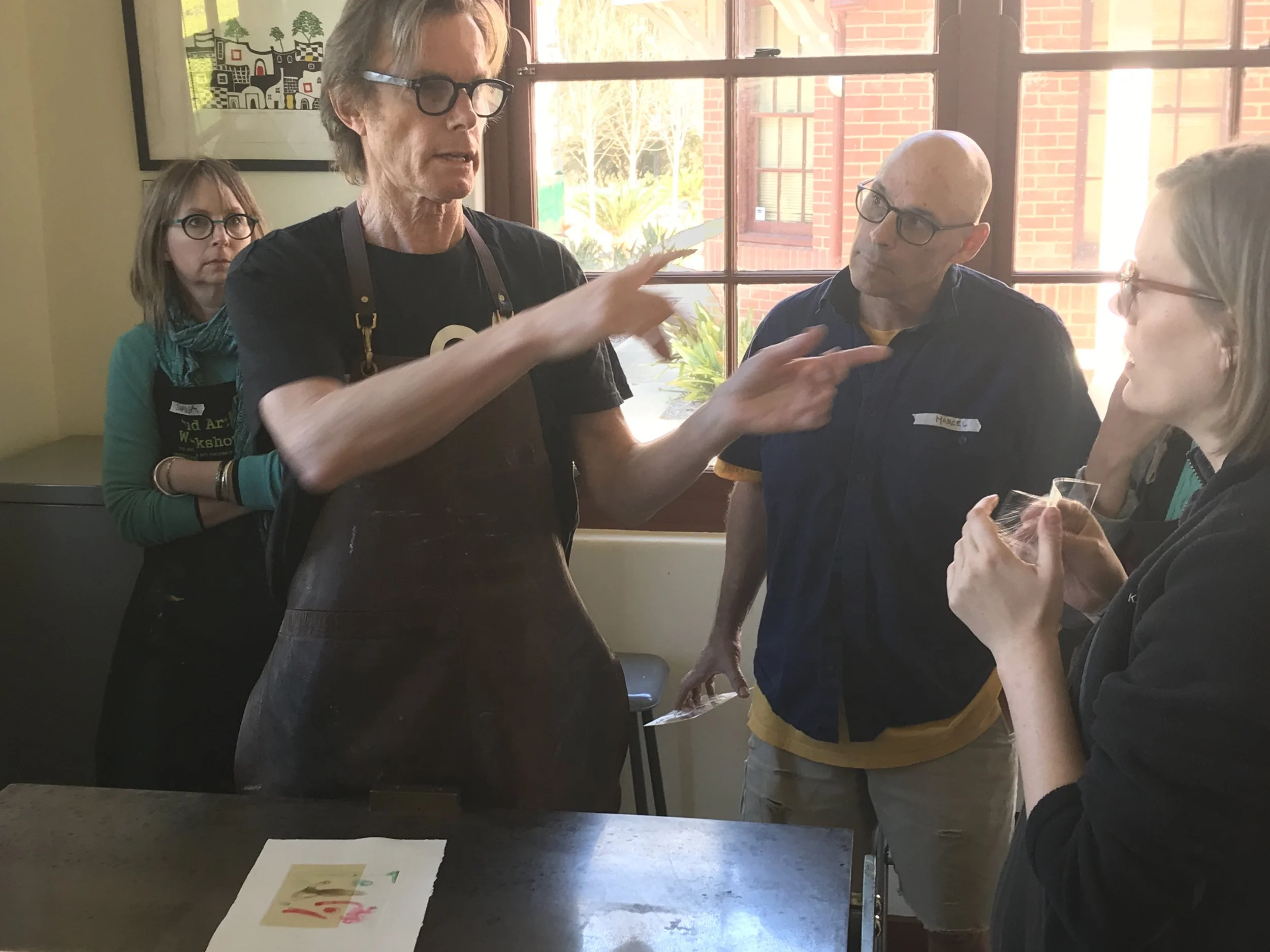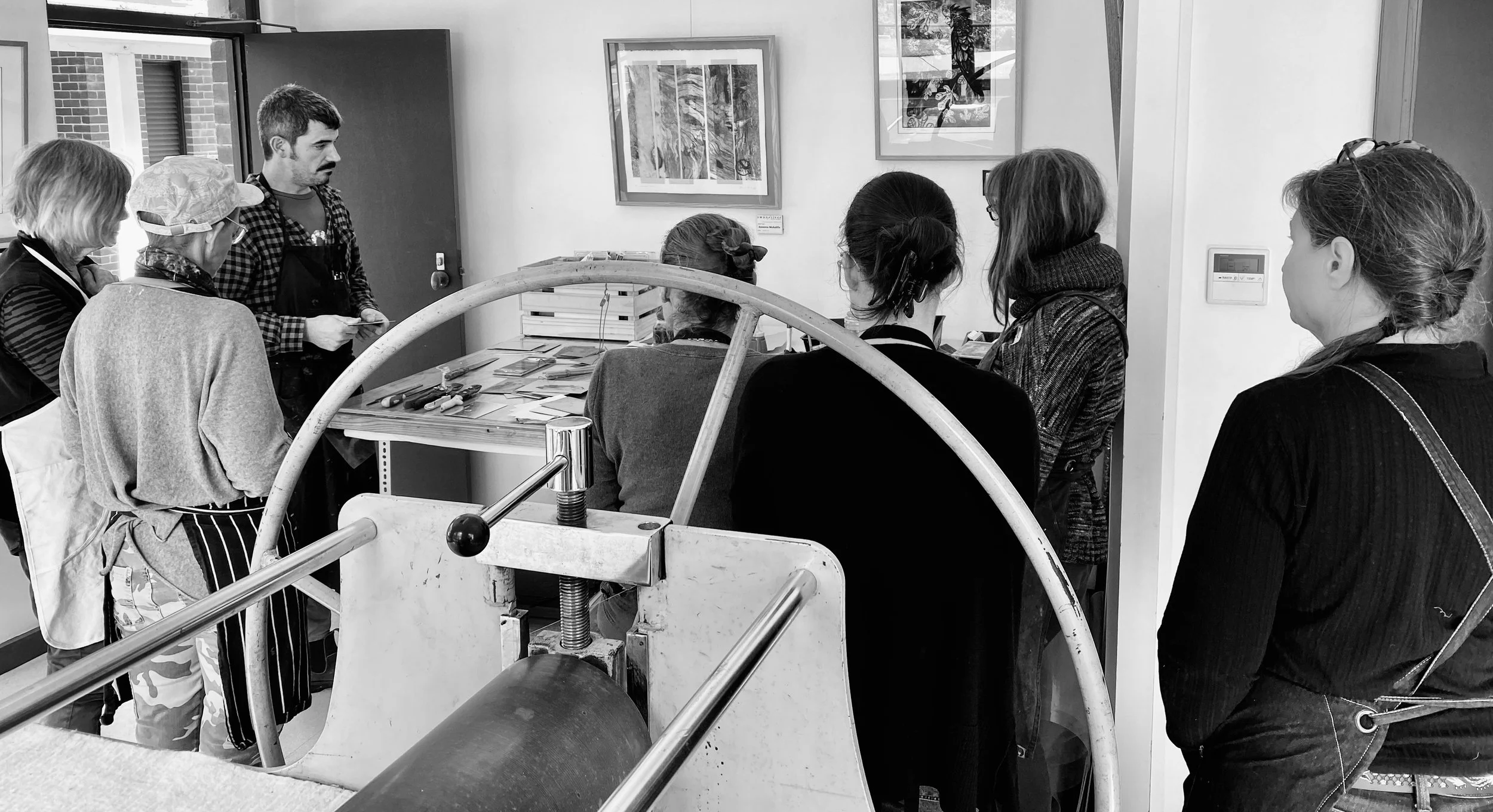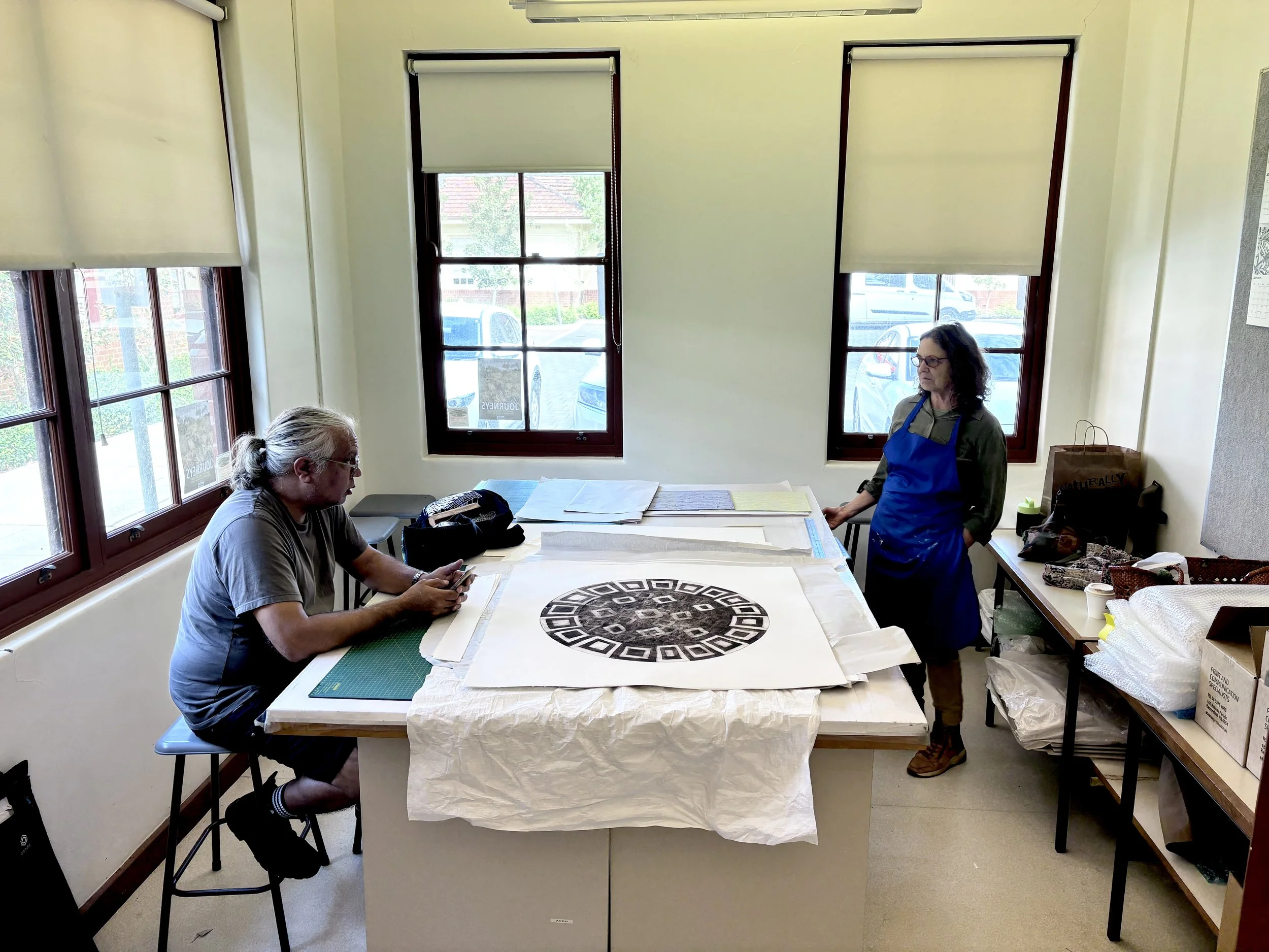 Founded in 2018 by Jo Darvall, Annemie McAuliffe, and Claire Lawson as a professional working space where WA artists can develop and refine their printmaking practice, the Swan River Print Studio is a not-for-profit organisation developed and managed by artists.